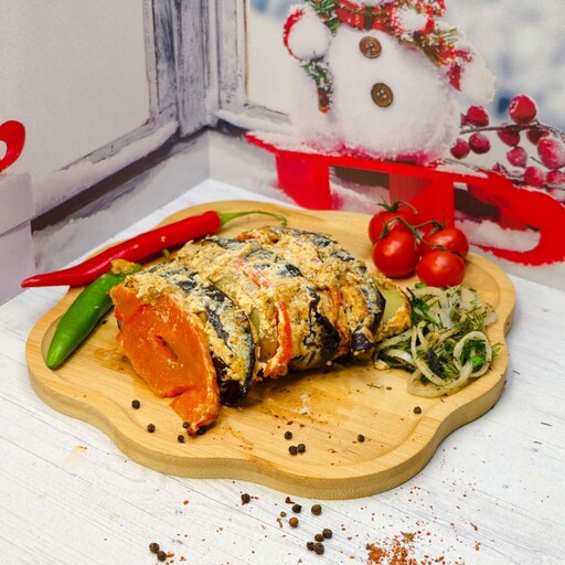 Баклажаны, кабачки, перец и картофель, нарезанные дольками, маринованные соусом и обжаренные на углях до лёгкой румяной корочки, сохранившие сочность и яркий вкус.