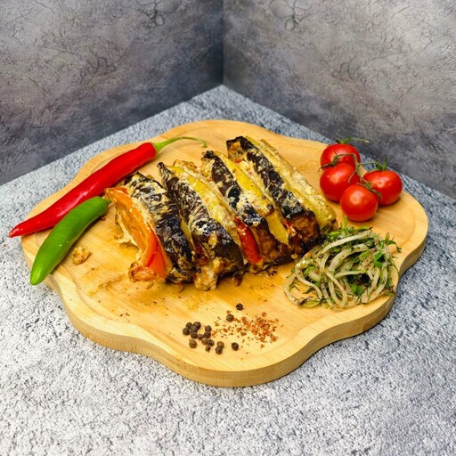 Баклажаны, кабачки, перец и картофель, нарезанные дольками, маринованные соусом и обжаренные на углях до лёгкой румяной корочки, сохранившие сочность и яркий вкус.